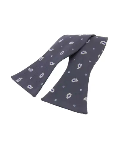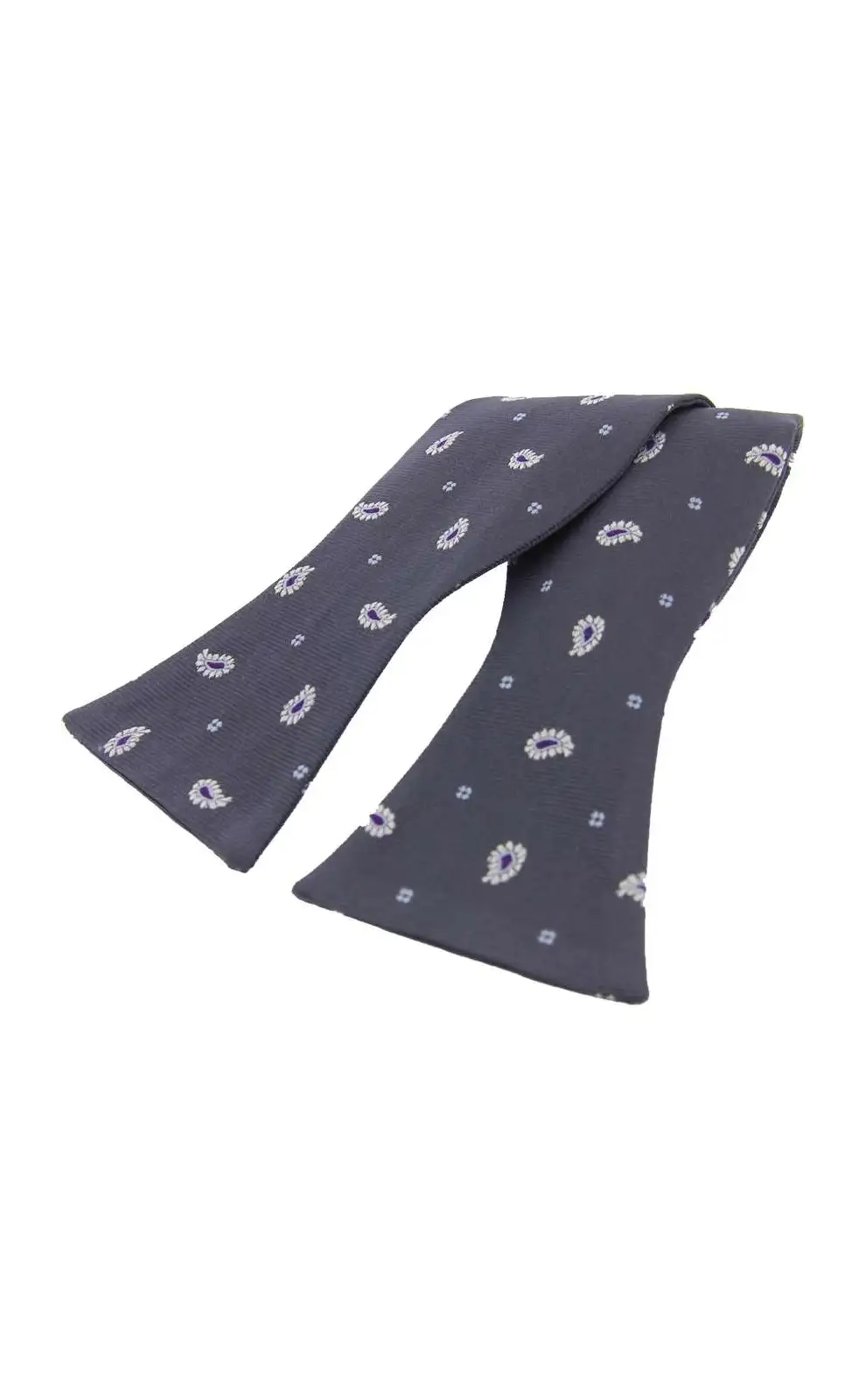 Soprano Charcoal Tear Drop Feather Paisley Silk Self Tied Bow