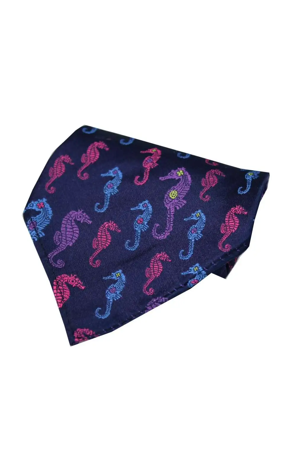 - Posh & Dandy Navy Multi Coloured Sea Horses Silk Pocket Hanky