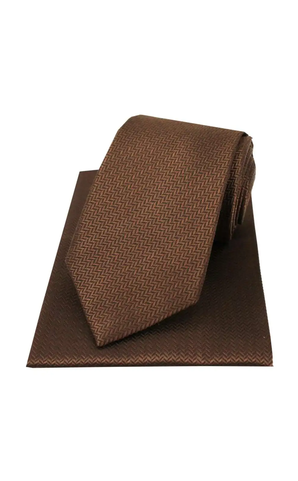 Soprano Brown Herringbone Silk Tie And Hanky Set