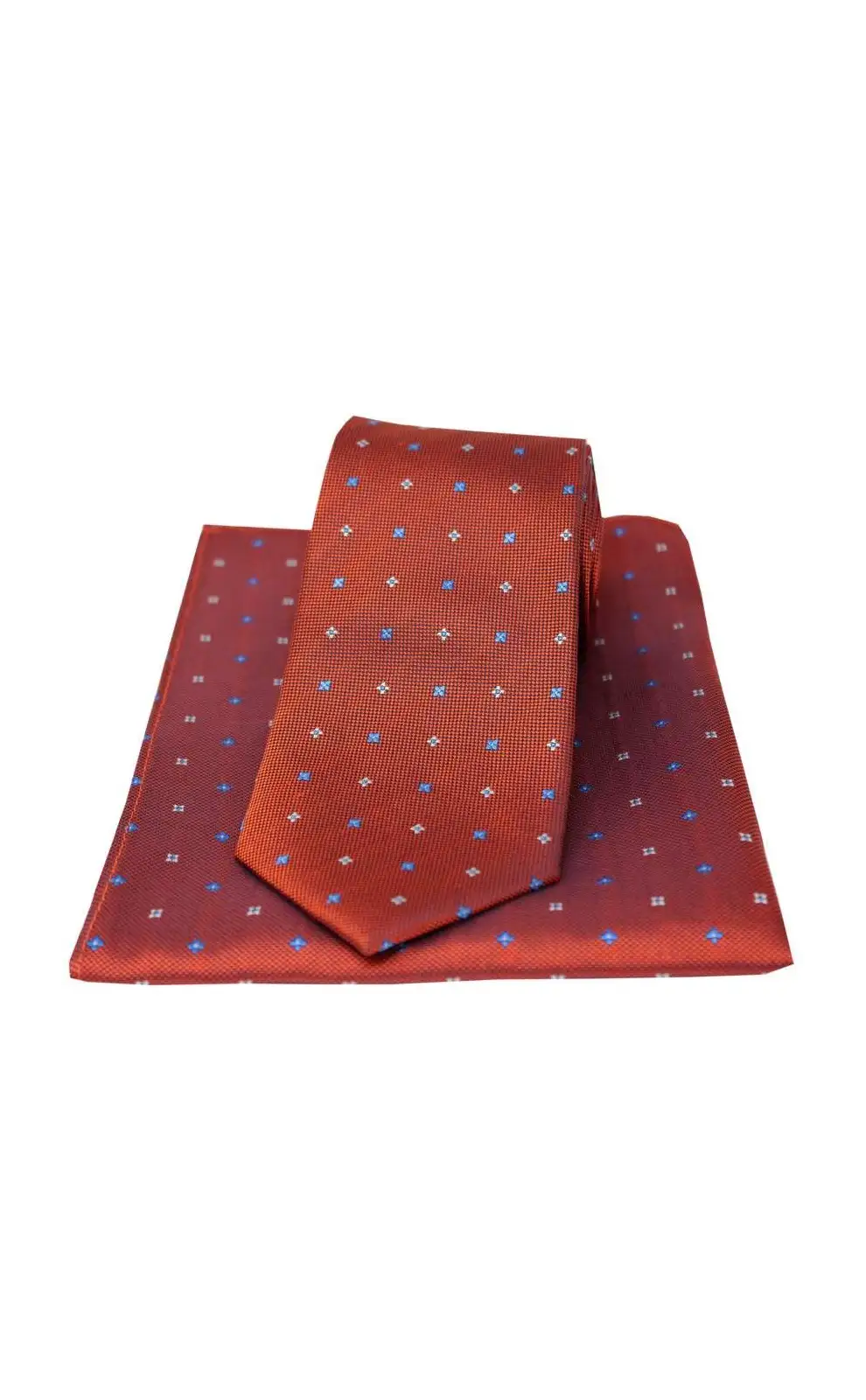 Soprano Burnt Orange Small Flowers Tie and Hanky Set