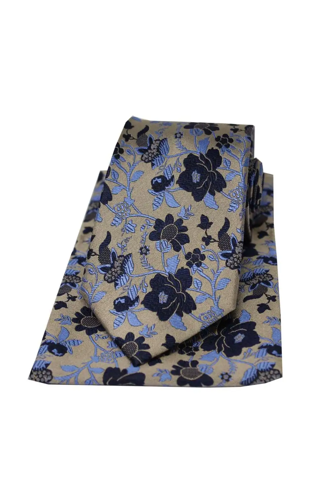 - Soprano Light Bronze Floral Patterned Silk Tie And Hanky Set, Finest Quality Silk Men's Ties.