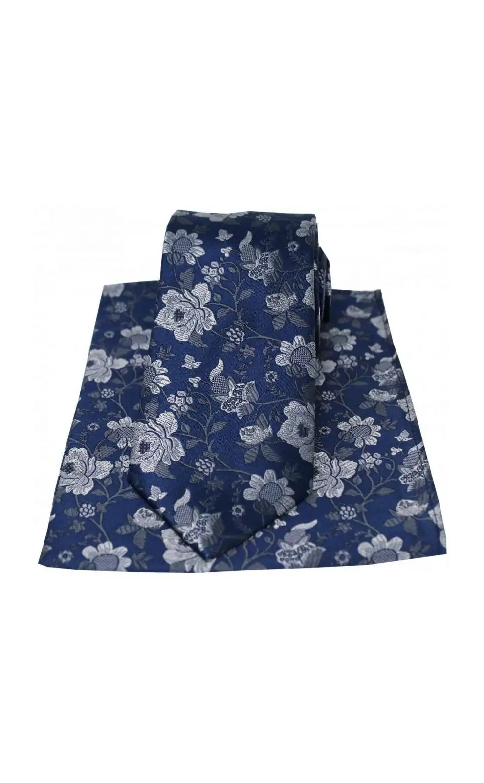 - Soprano Navy Floral Silk Tie And Pocket Square