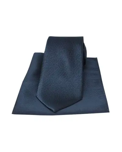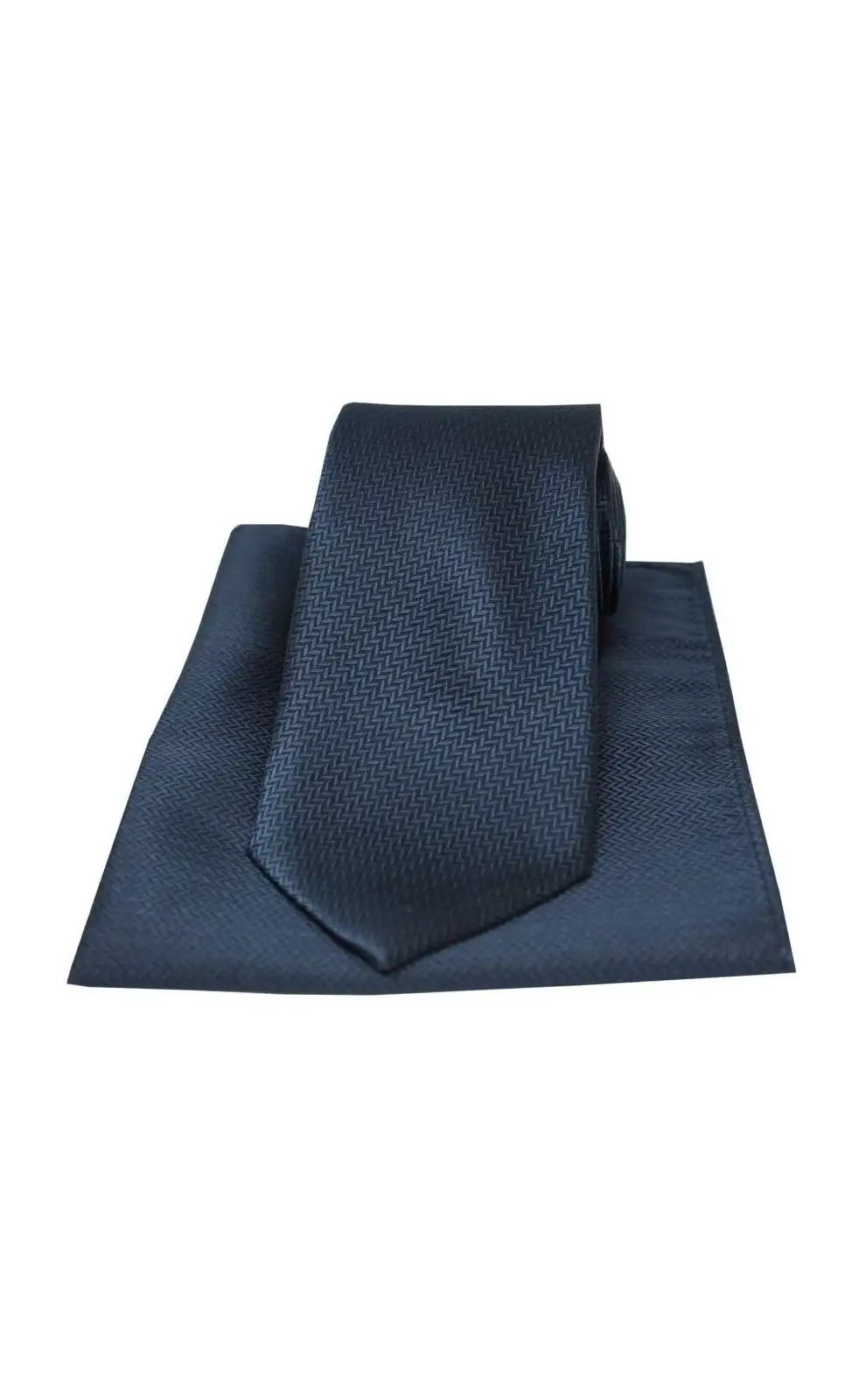Soprano Navy Herringbone Silk Tie And Hanky Set