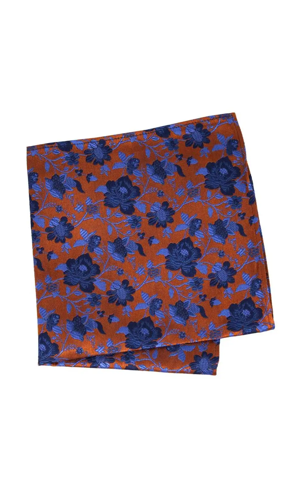 - Soprano Orange Floral Patterned Luxury Silk Hanky