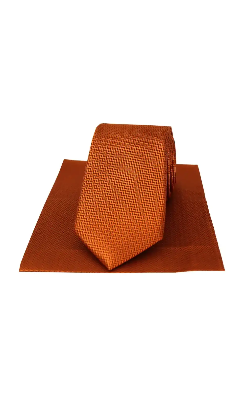- Soprano Rust Herringbone Silk Tie and Pocket Square