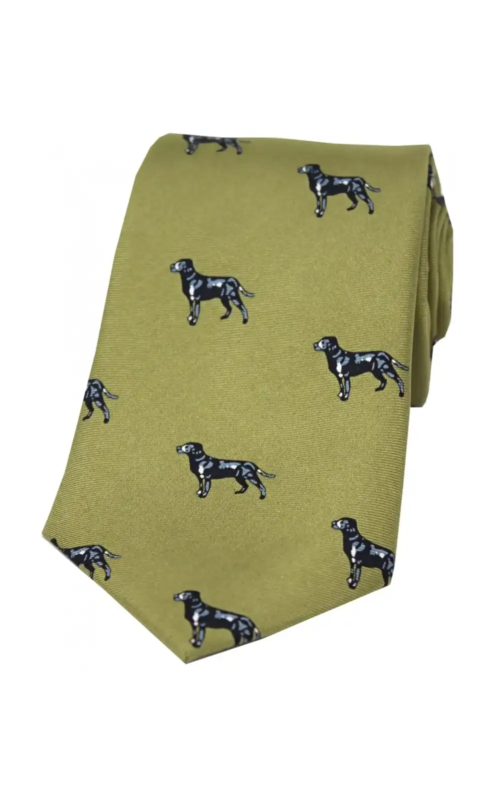 - Soprano Black Labradors On Green Ground Country Silk Tie, the perfect addition to any discerning Gentlemen's Country Wardrobe.