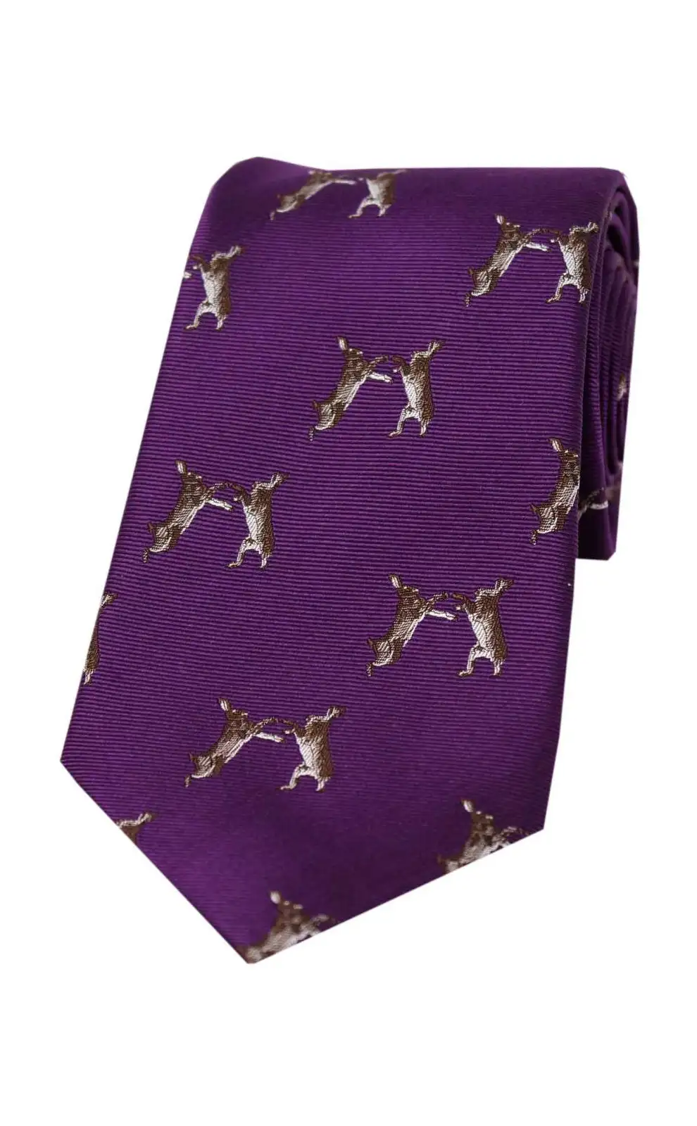 - Soprano Boxing Hares On Purple Ground Country Silk Tie, the perfect addition to any discerning Gentlemen's Country wardrobe.