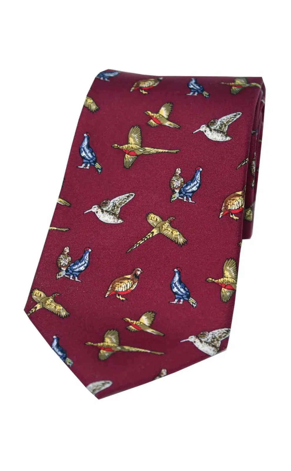 - Soprano Country Birds On Wine Ground Country Silk Tie, the perfect addition to any discerning Gentlemen's Country wardrobe.
