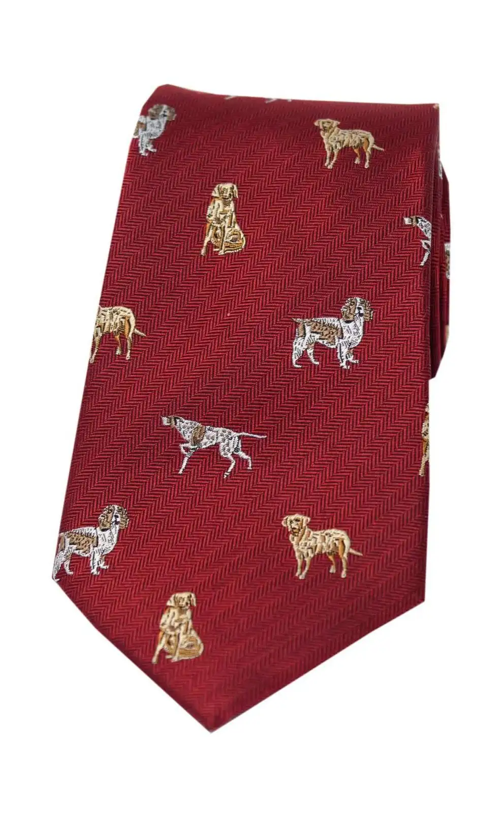 - Soprano Dogs On Red Ground Country Silk Tie, the perfect addition to any discerning Gentlemen's Country wardrobe.