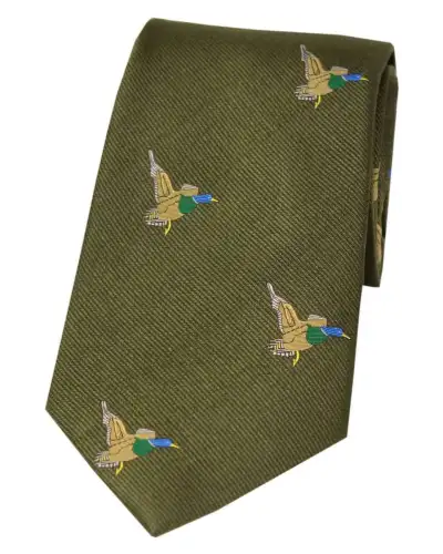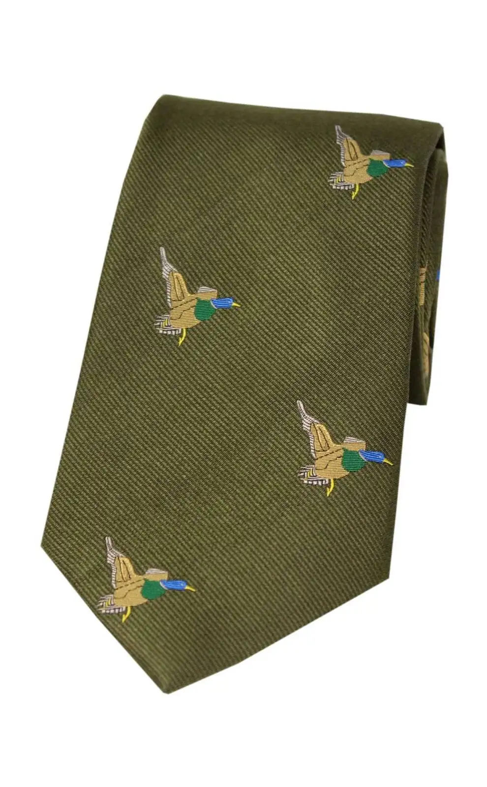 - Soprano Flying Ducks On Country Green Ground Country Silk Tie, the perfect addition to any discerning Gentlemen's Country wardrobe.