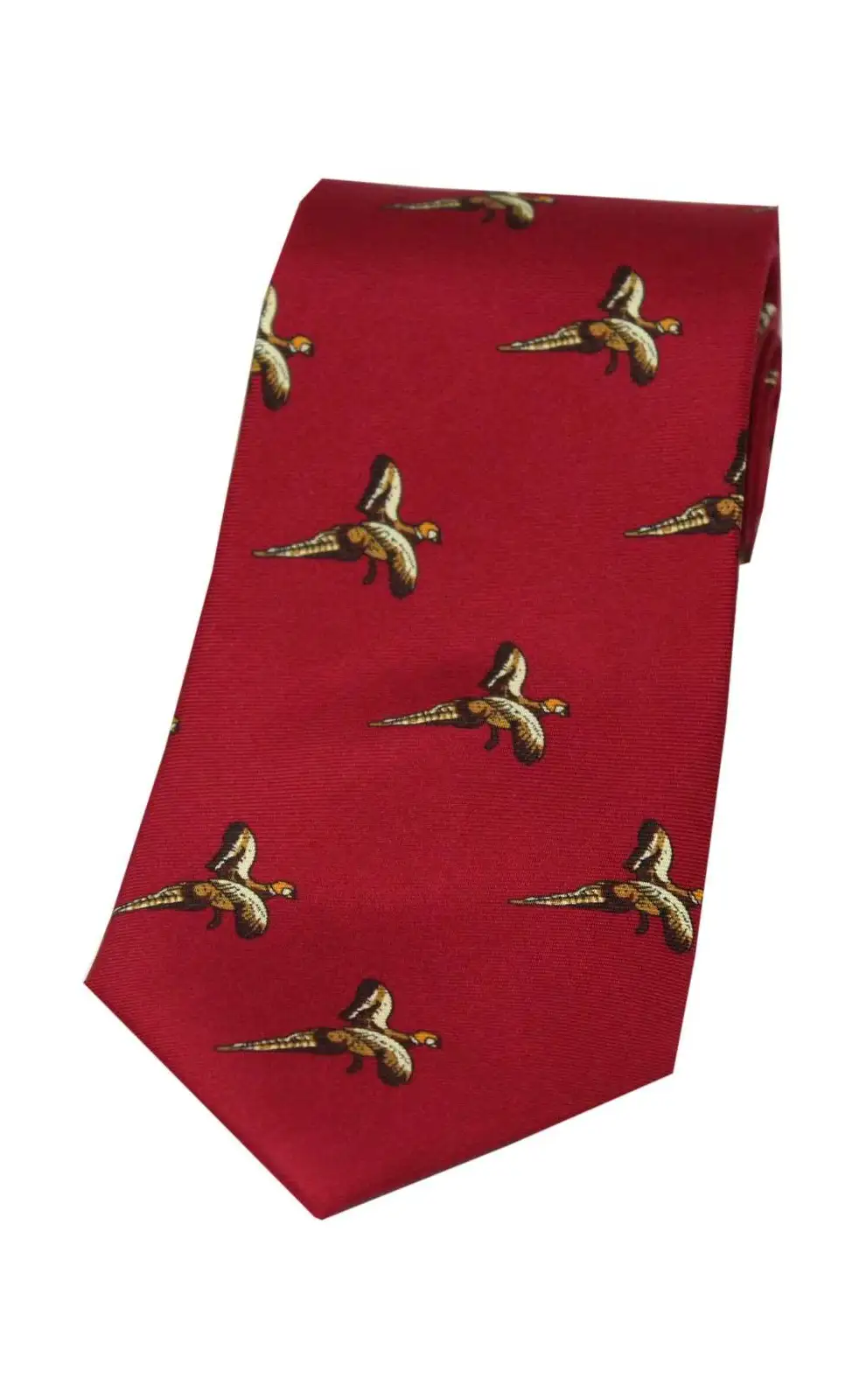 - Soprano Flying Pheasant On Red Ground Country Silk Tie, the perfect addition to any discerning Gentlemen's Country wardrobe.