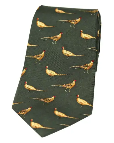 - Soprano Flying Pheasants On Country Green Ground Country Silk Tie, the perfect addition to any discerning Gentlemen's Country wardrobe.