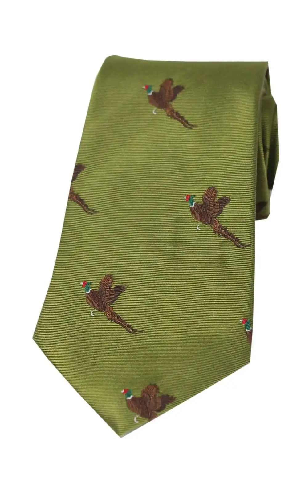 - Soprano Flying Pheasants On Moss Green Ground Country Silk Tie, the perfect addition to any discerning Gentlemen's Country wardrobe.