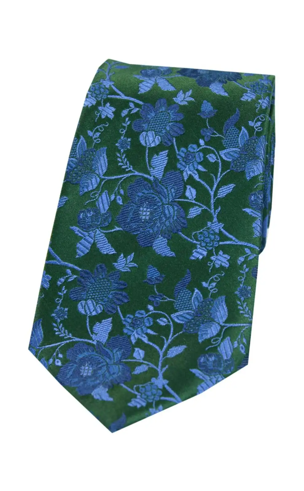 - Soprano Forest Green Floral Patterned Silk Tie, Finest Quality Silk Men's Ties.
