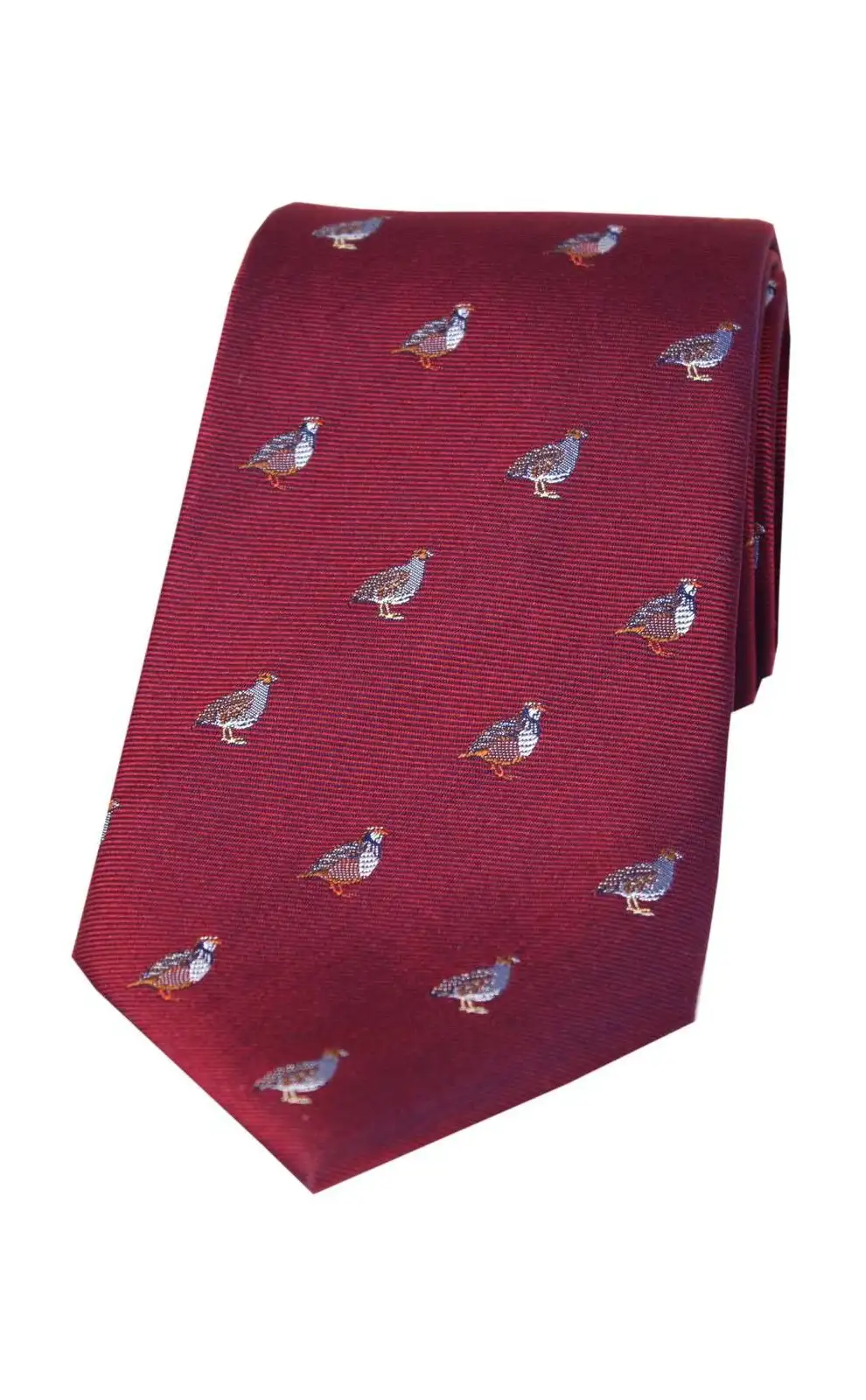 - Soprano Grouse and Partridge On Wine Ground Country Silk Tie, the perfect addition to any discerning Gentlemen's Country wardrobe.