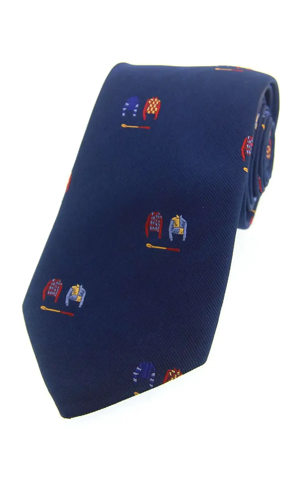 - Soprano Jockey Colours On Blue Ground Country Silk Tie, the perfect addition to any discerning Gentlemen's Country wardrobe.