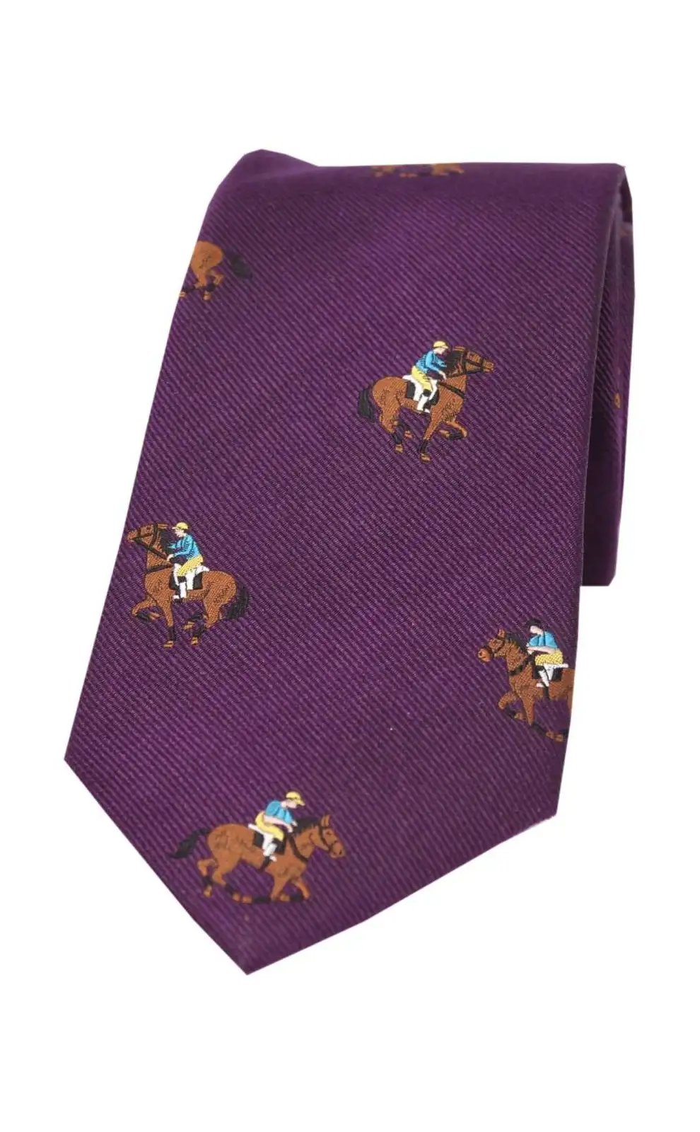 - Soprano Jockeys And Horses On Purple Ground Silk Tie, the perfect addition to any discerning Gentlemen's Country wardrobe.