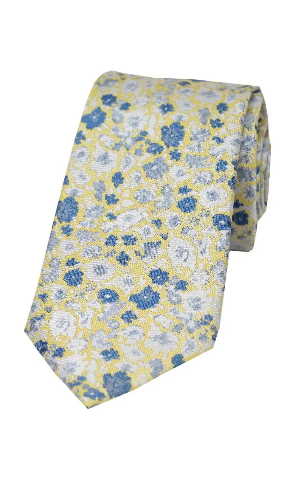 - Soprano Light Yellow Floral Luxury Silk Tie