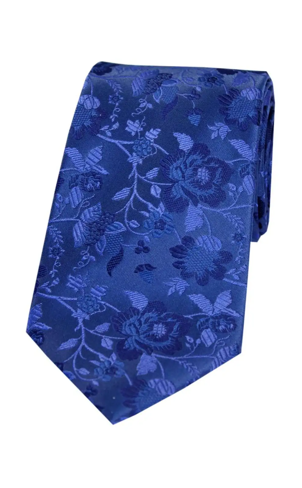 - Soprano Mid Blue Floral Pattern Silk Tie, Finest Quality Silk Men's Ties.