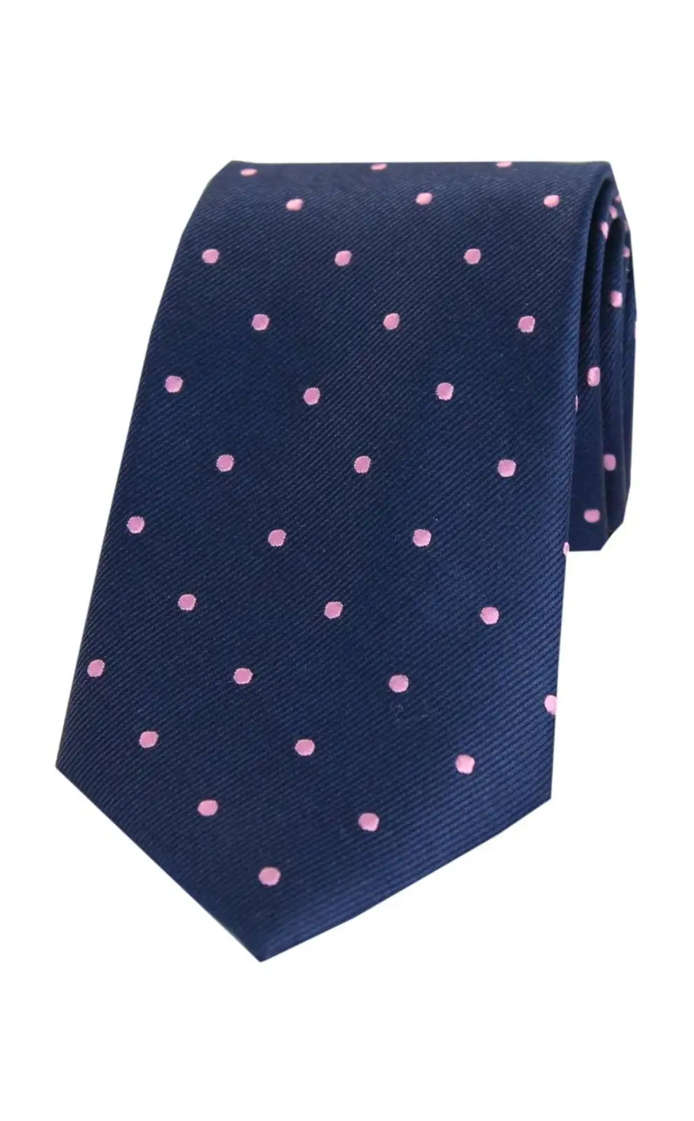 - Soprano Navy and Pink Polka Dot Silk Tie, Finest Quality Silk Men's Ties.