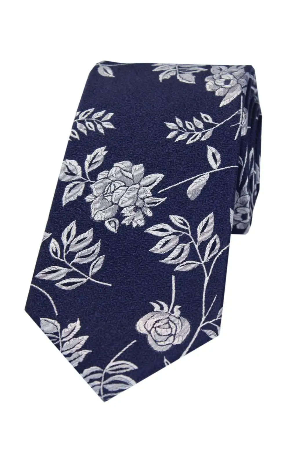 - Soprano Navy Flower And Leaf Luxury Silk Tie