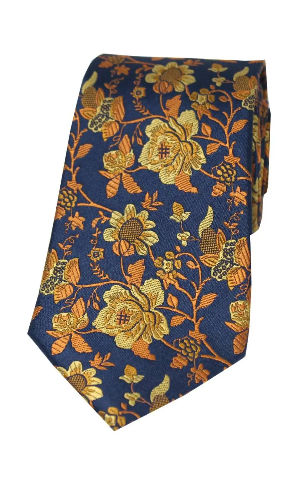 - Soprano Navy Gold Burnt Orange Floral Silk Tie