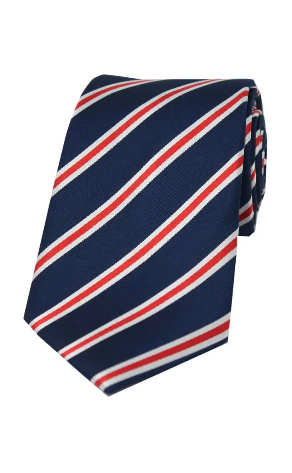 - Soprano Navy Red and White Striped Silk Tie, Finest Quality Silk Men's Ties.