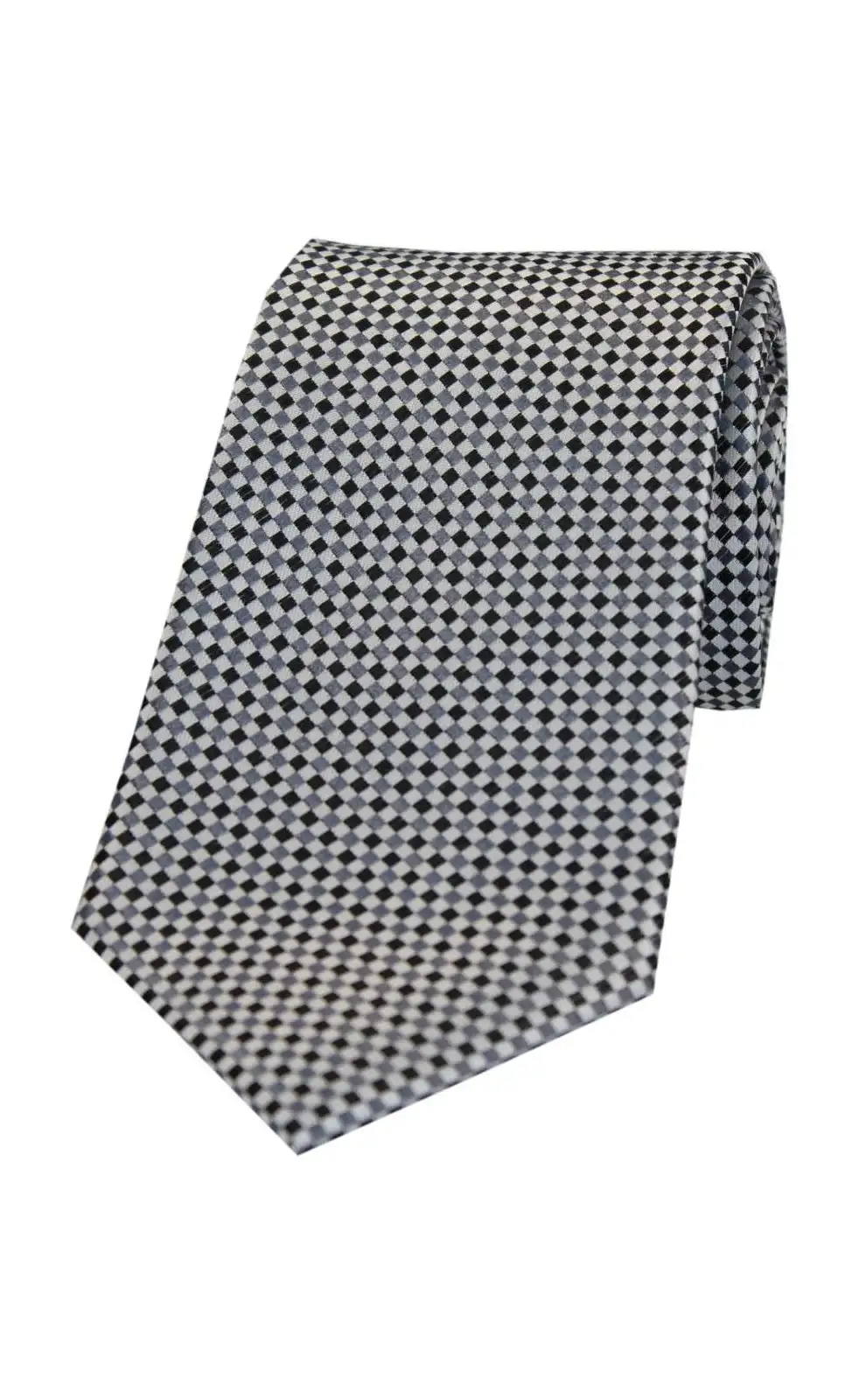 - Soprano Neat Checked Silver and Grey Silk Tie, Finest Quality Silk Men's Ties.