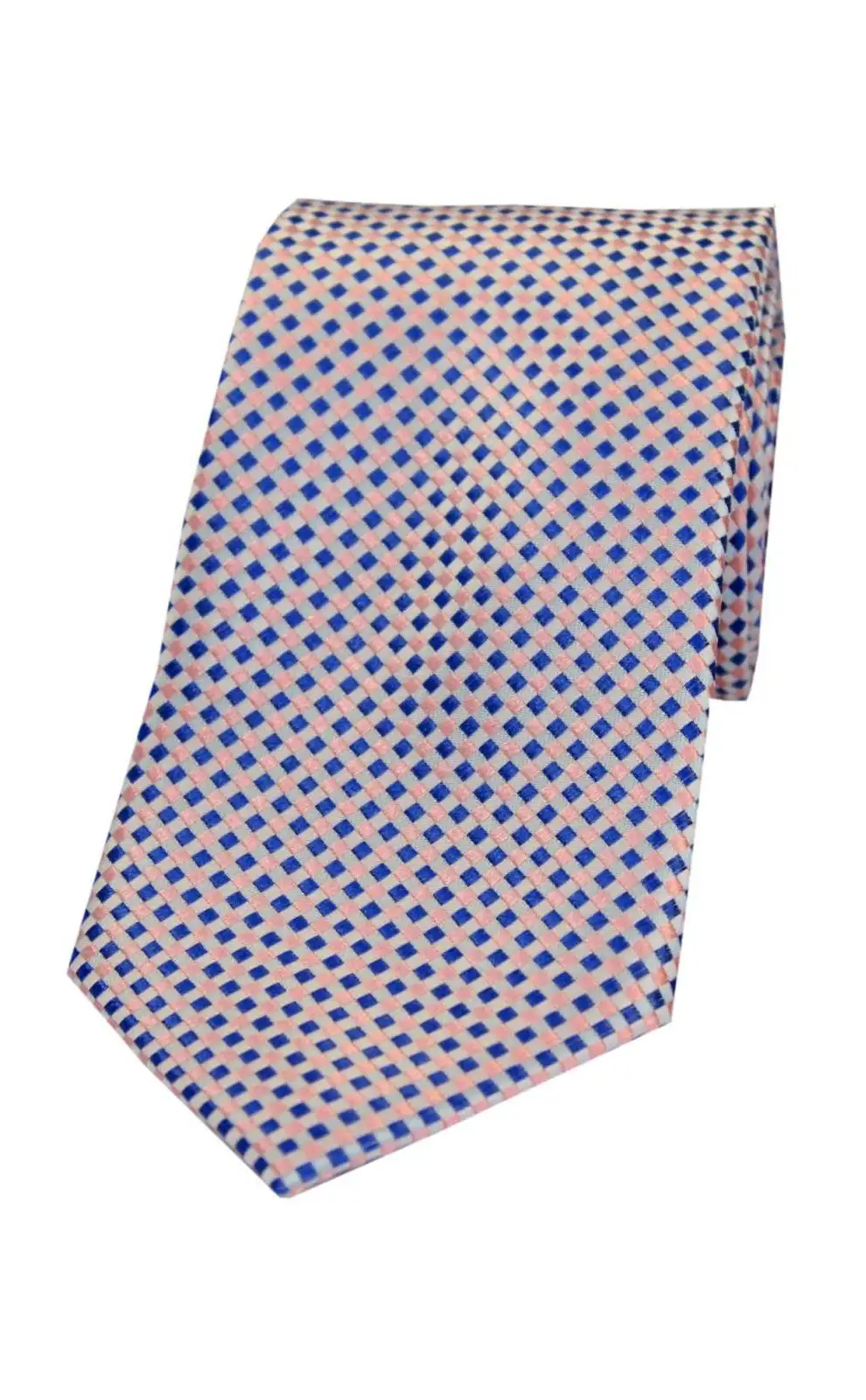 - Soprano Neat Checked Sky and Pink Silk Tie, Finest Quality Silk Men's Ties.