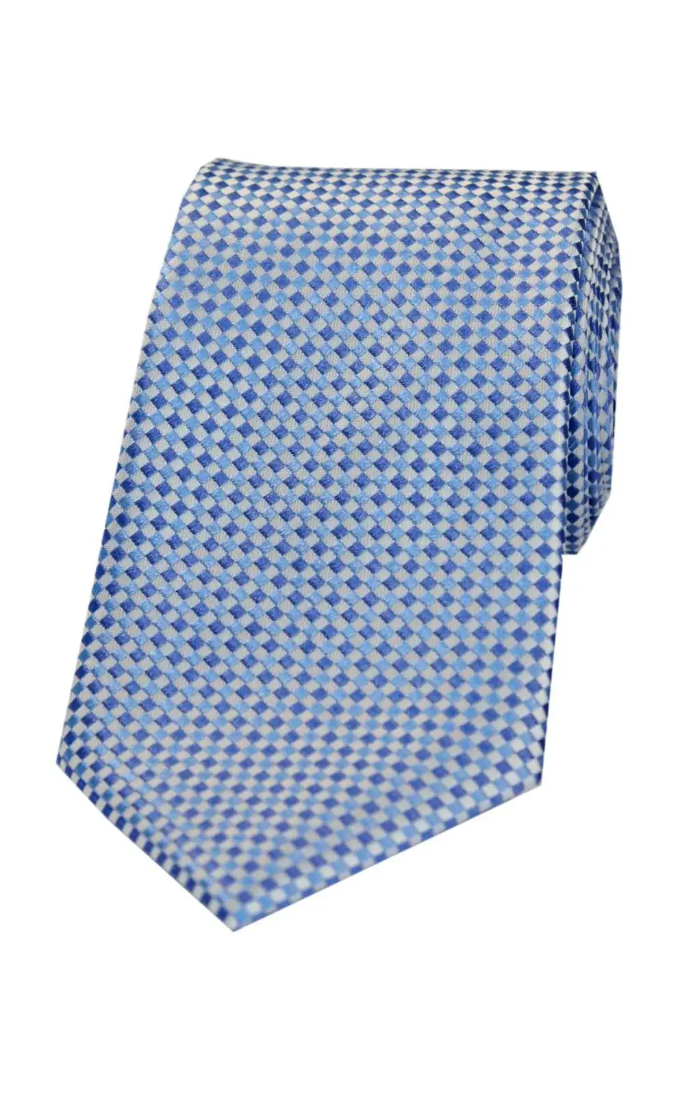 - Soprano Neat Checked Sky and Silver Silk Tie, Finest Quality Silk Men's Ties.