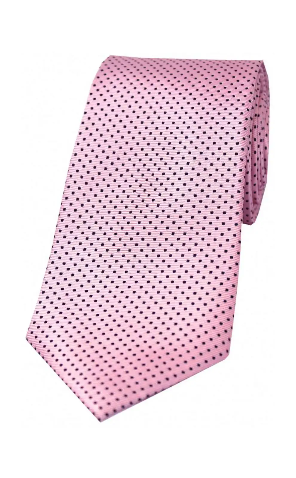 - Soprano Pink and Black Pin Dot Woven Silk Tie, Finest Quality Silk Men's Ties.
