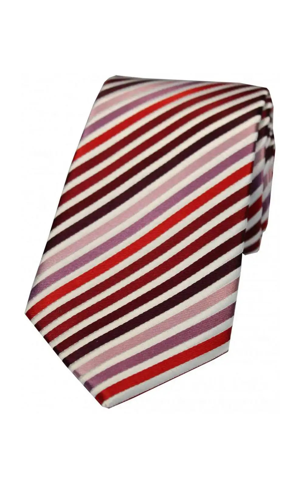 - Soprano Shades of Red Pink Lilac Wine Stripes Silk Tie