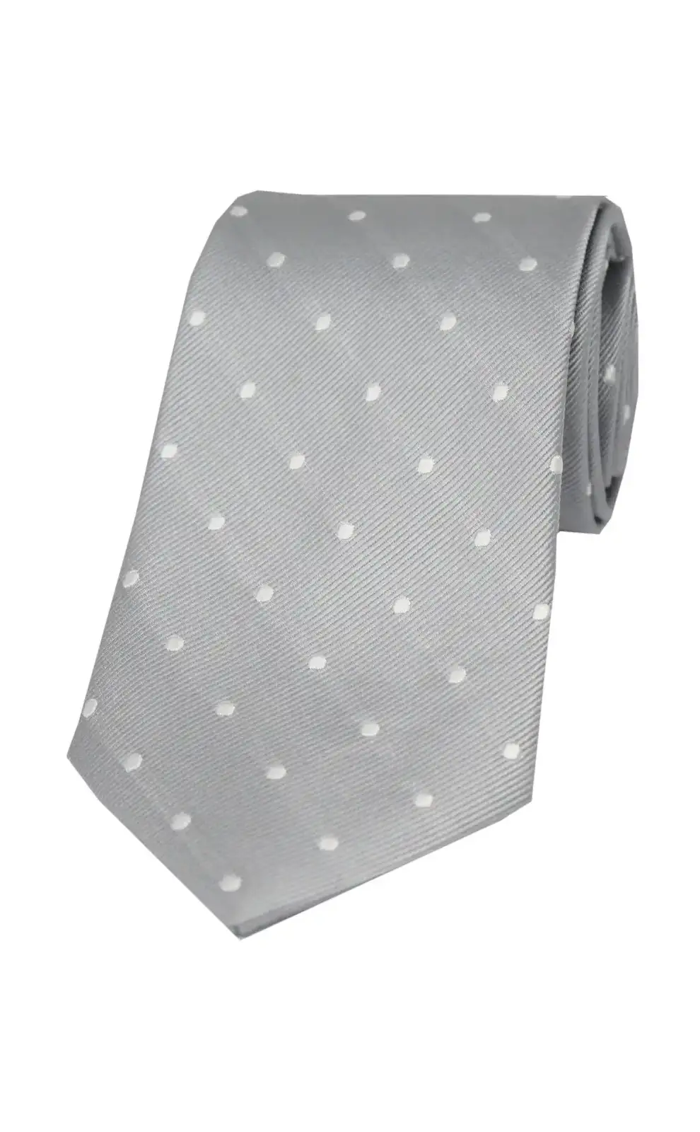 - Soprano Silver and White Polka Dot Silk Tie, Finest Quality Silk Men's Ties.