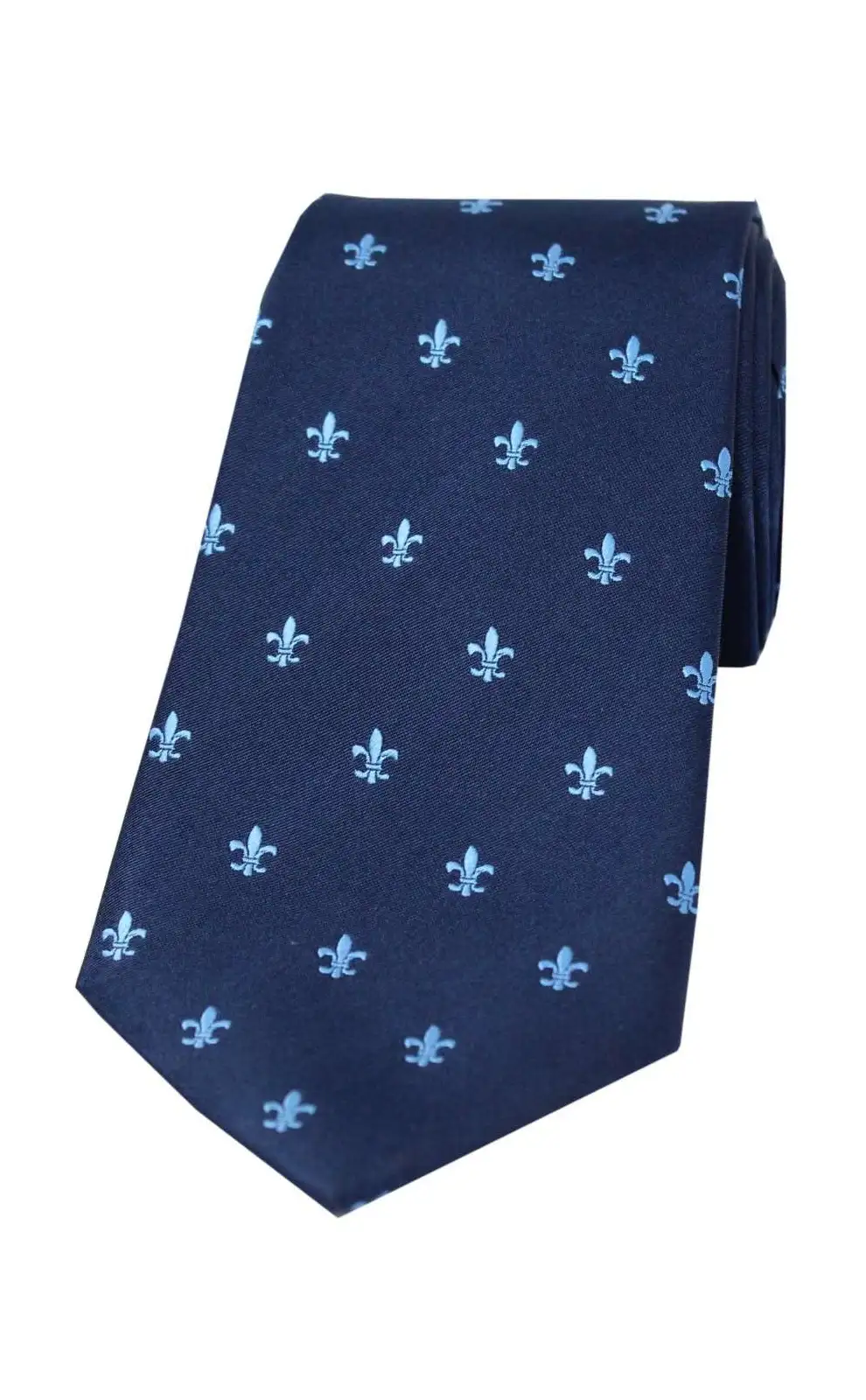 - Soprano Sky Blue Fleur de Lys on Navy Ground Silk Tie, Finest Quality Silk Men's Ties.