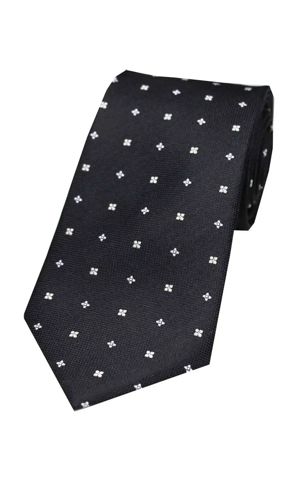 - Soprano Small Flowers Black Silk Tie, Finest Quality Silk Men's Ties.