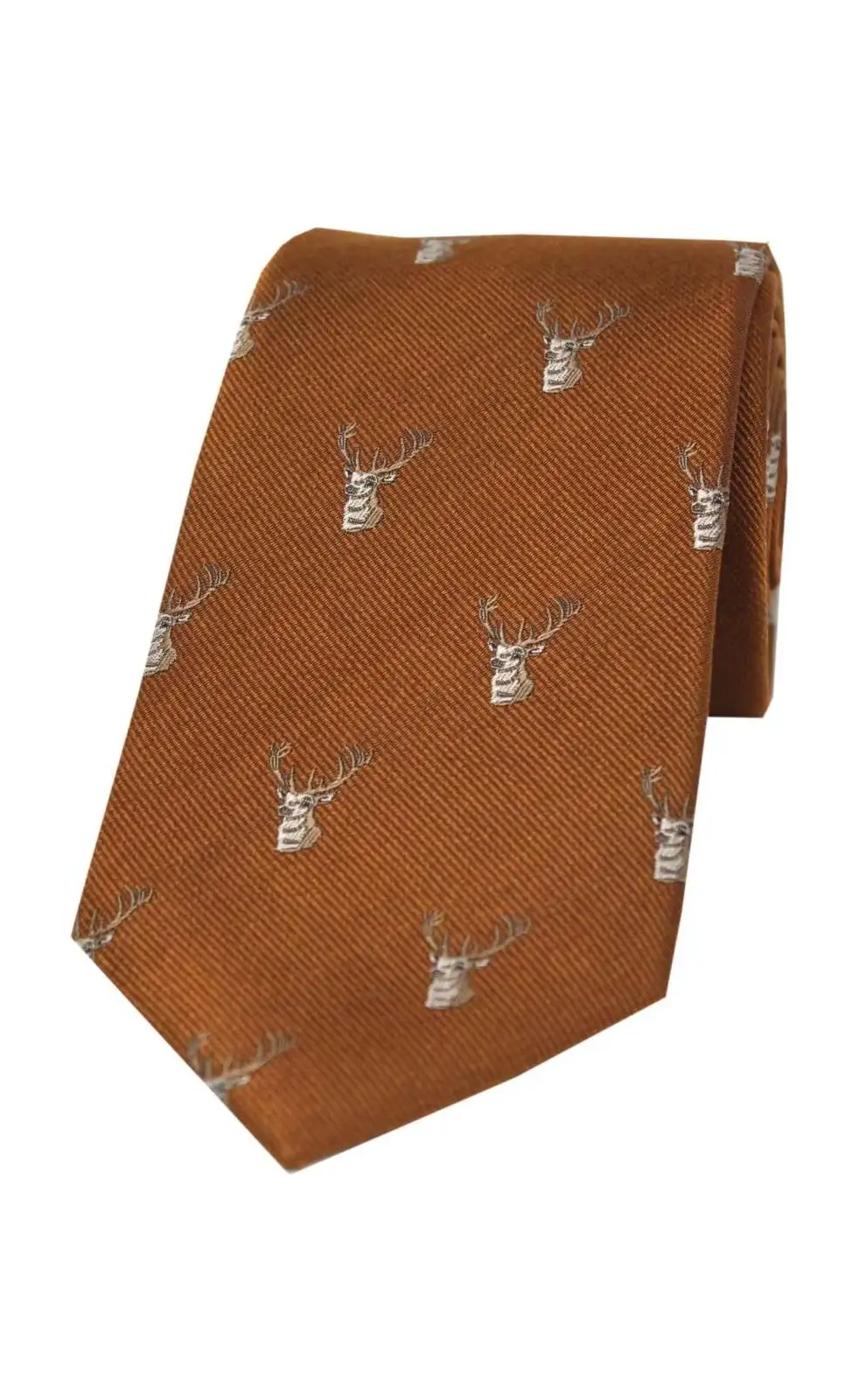 - Soprano Stags Heads On Brown Rust Ground Country Silk Tie, the perfect addition to any discerning Gentlemen's Country wardrobe.