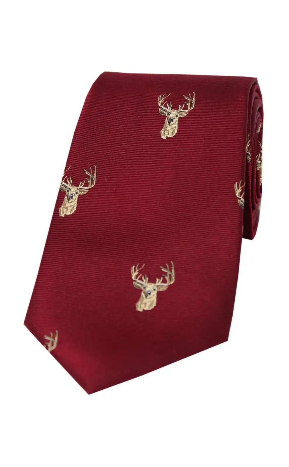 - Soprano Stags Heads Wine Ground Country Silk Tie, the perfect addition to any discerning Gentlemen's Country wardrobe.