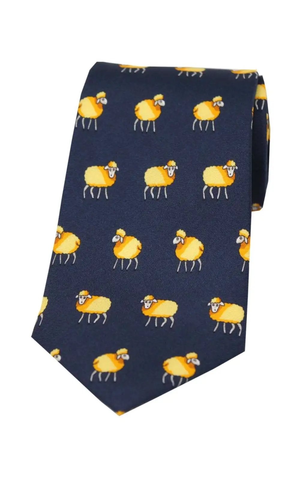 - Soprano Yellow Orange Sheep On Navy Ground Country Silk Tie, the perfect addition to any discerning Gentlemen's Country wardrobe.