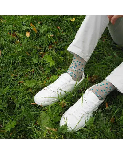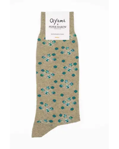 Stay cosy and chic with the Ayame Snowing men's socks in beige. The unique beige design features a pop of teal, making it the perfect addition to your wardrobe, without sacrificing comfort or luxury. Its unique design makes it an ideal choice when you want your style to stand out.