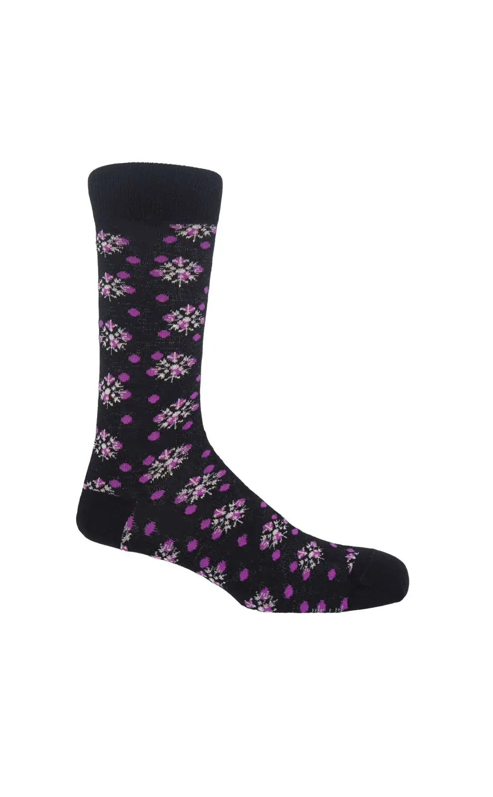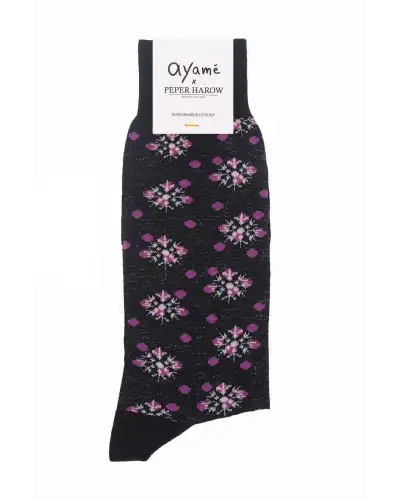Stay cosy and chic with the Ayame Snowing men's socks in black. The unique black design features a pop of purple, making it the perfect addition to your wardrobe, without sacrificing comfort or luxury. Its unique design makes it an ideal choice when you want your style to stand out.