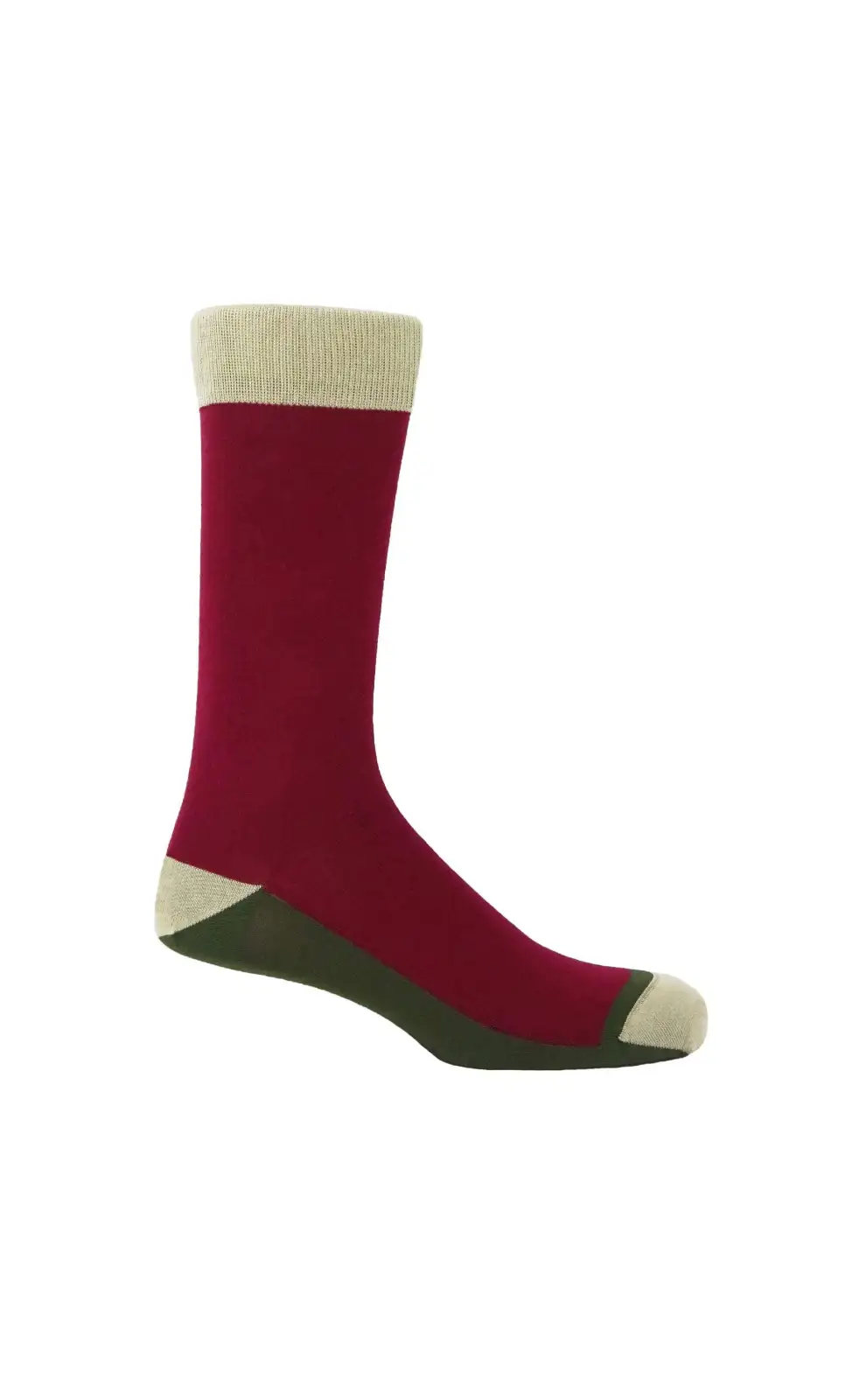 Introducing the burgundy Burgess stylish Egyptian cotton men's socks. With a contrasting heel and cream cuff, these extraordinary gentleman's luxury socks are a perfect fit for the dapper man who wants style and impeccable quality without compromise.