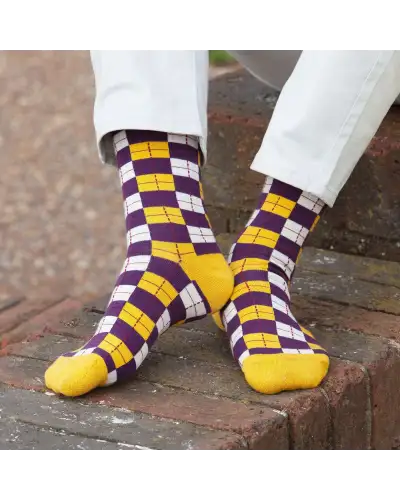 The true crowning glory of any stylish gentleman's wardrobe, the vibrant gold Checkmate men's luxury socks are a contemporary yet quirky design for unequivocally suave men, no matter the outfit.