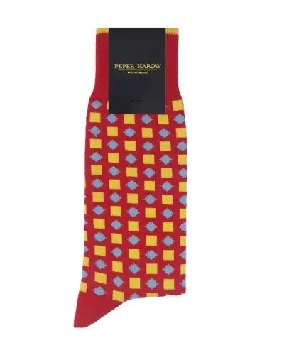 The ever-stylish red Diamonds men's luxury socks transforms an already dashing outfit into a statement that only true gentlemen can achieve. Featuring yellow squares and blue diamonds, these vibrant red socks for men are a spectacular addition to any attire and are an all time favourite.
