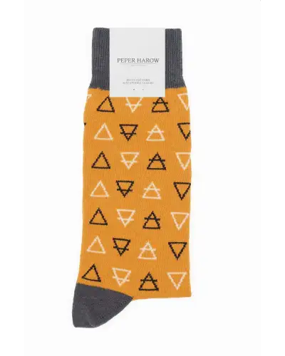 Experience the ultimate in comfort and style with Elements men's socks. These socks feature a warm mustard colour with unique triangle designs in black and white, making them the perfect addition to any look. The quality of these socks is second to none, enhancing any wardrobe.