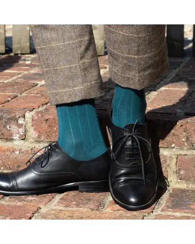 These sumptuous teal Indulgent Cashmere men's luxury socks boast both warmth and sophistication. An essential for the discerning gentleman, they guarantee an unparalleled level of comfort and style no matter the occasion.