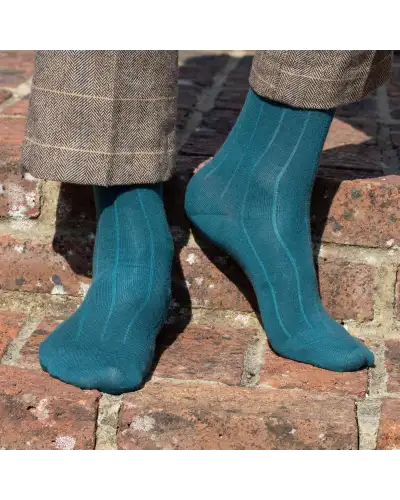 These sumptuous teal Indulgent Cashmere men's luxury socks boast both warmth and sophistication. An essential for the discerning gentleman, they guarantee an unparalleled level of comfort and style no matter the occasion.