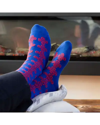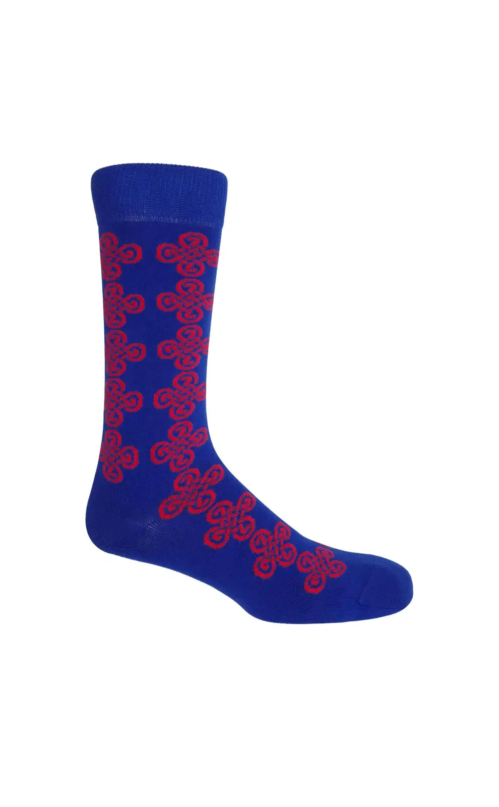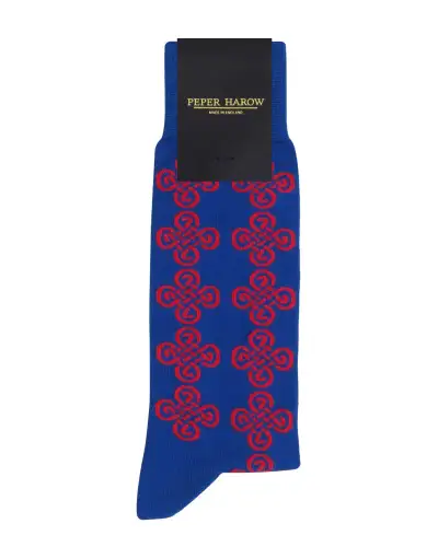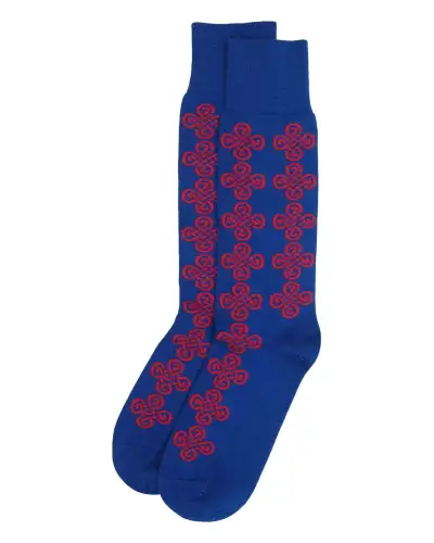 The blue Knot men's luxury socks represent the height of luxury, these men's socks offer exceptional style and comfort, making them a standout addition to your wardrobe. Featuring a striking Celtic knot pattern in red. These blue socks are perfectly suited to smart attire, yet versatile enough for everyday wear.