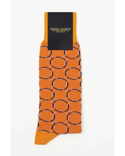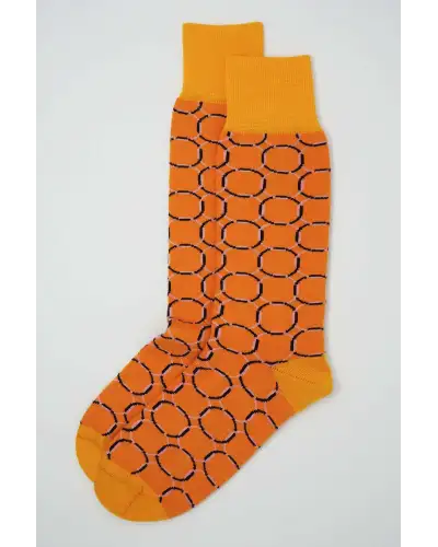 Add another link to your fashion repertoire with the orange Linked luxury men's socks. With its fiery orange and yellow, these vivid patterned men's socks are sure to set fire to any ensemble be it formal or otherwise.