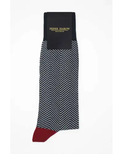 The definition of sophisticated style, the Lux Taylor, an old favourite and Peper Harow best-seller, is an exquisite addition to almost any outfit. Coming in black, this impeccably designed pair of luxury men's socks feature a white zigzag pattern and a red heel and toe. The black Lux Taylor - a vital addition to your dapper outfit.