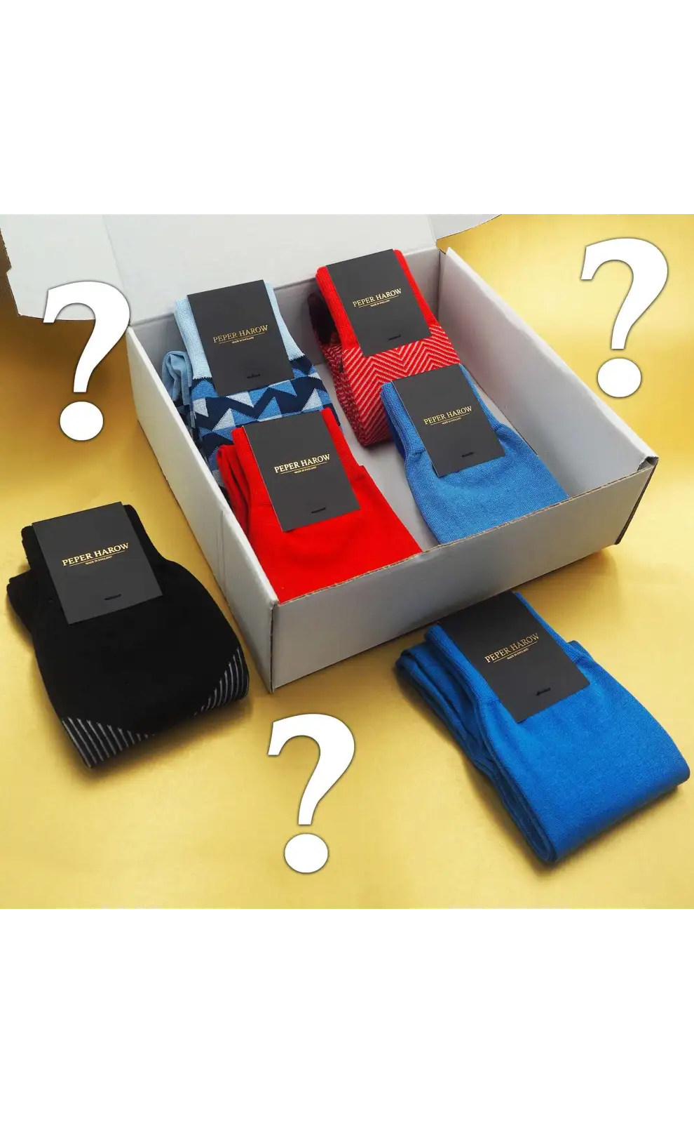 Everyone loves a good mystery! Introducing our new Men's Mystery Box where you can choose a 3-pair, 5-pair or 7-pair box full of stylish men's luxury socks. This Mystery Box of socks contains a mixture of our earlier, current and even never-before-seen designs and colours!
